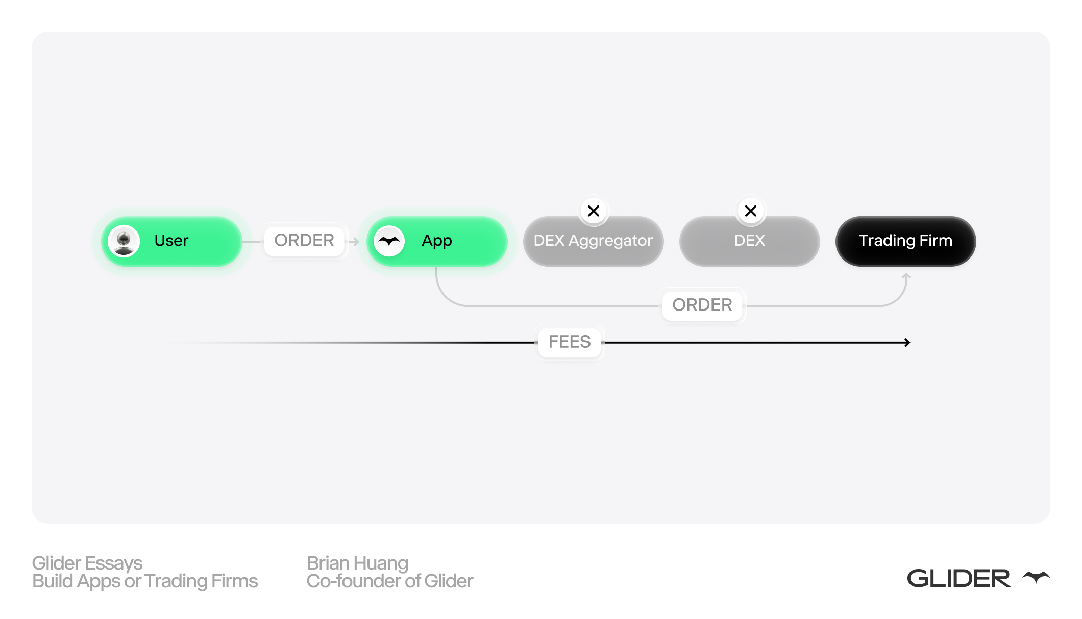 All of this is to also say that there has never been a better time to build apps in crypto. I’ve seen it personally at Glider. As an app, you get your choice across commoditized infrastructure and part of that is where you route your orders. As the competition for benign order flow heats up, the owners and originators of that flow are incredibly well-positioned over middlemen.