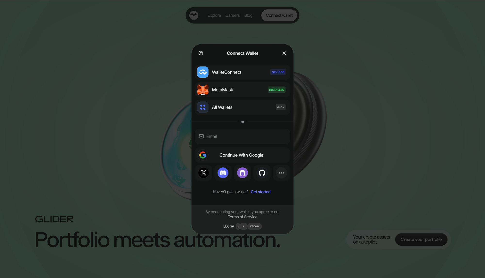 Once inside, you’ll see a welcome screen. Glider automates your portfolio with:
