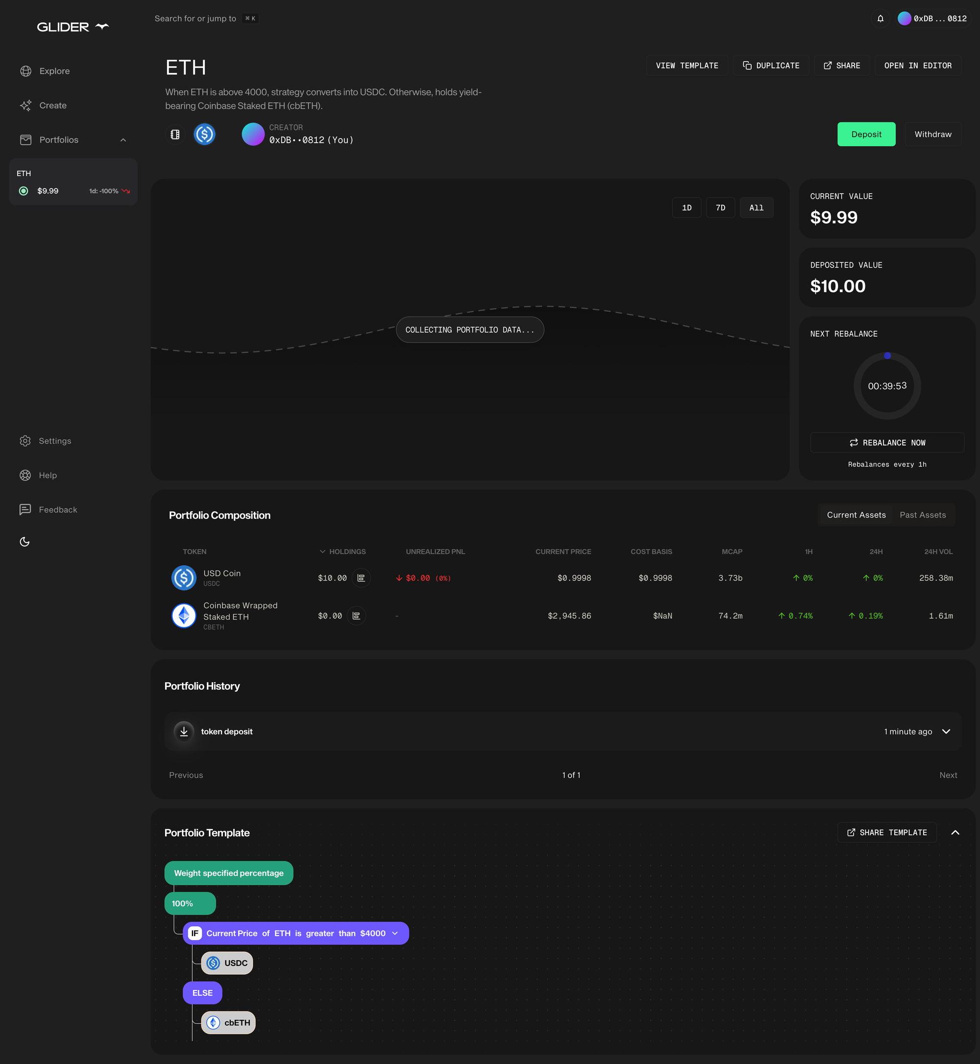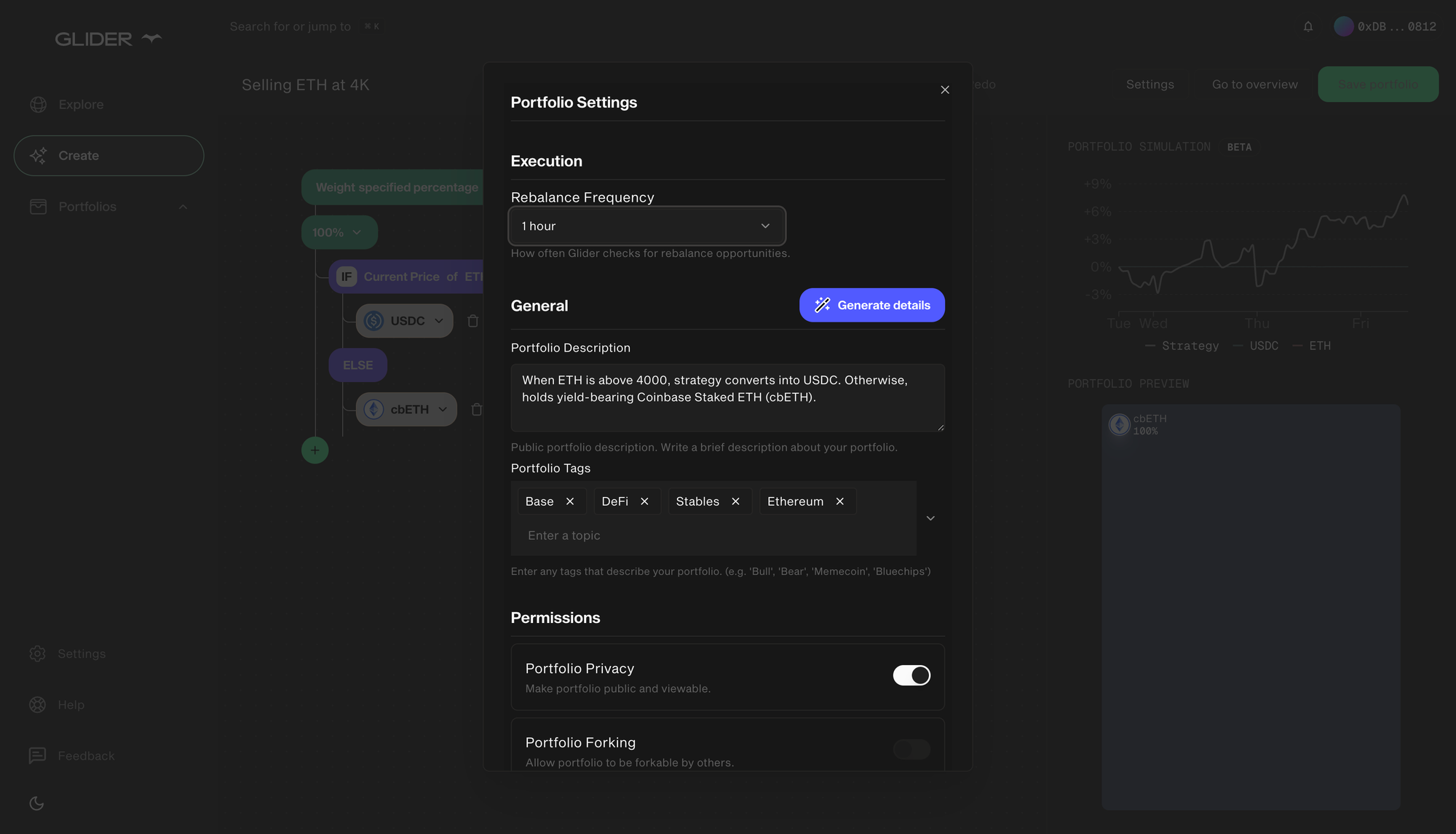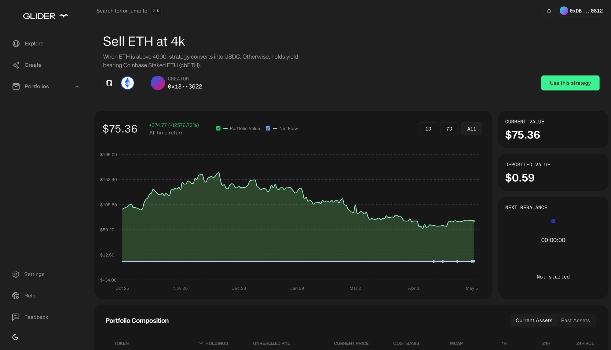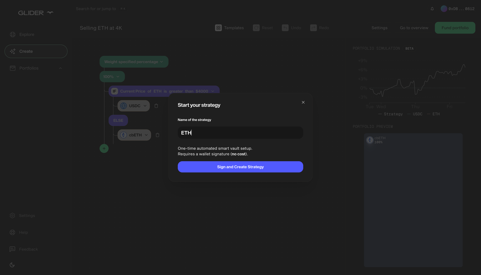 In this instance, we'll be selecting a pre-built portfolio "Sell ETH at 4k".