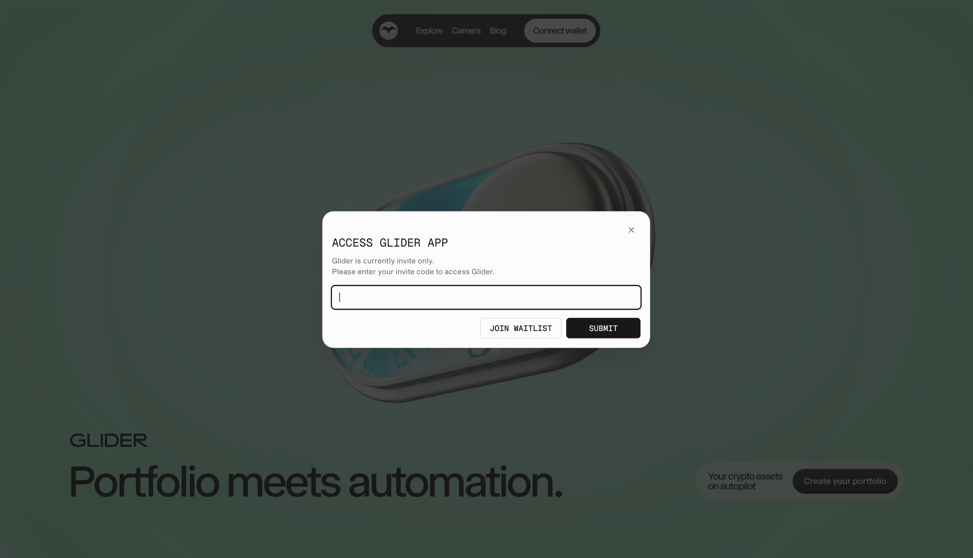 Glider is currently in invite-only beta. If you have a code, great. If not, join our waitlist at glider.fi for early access.